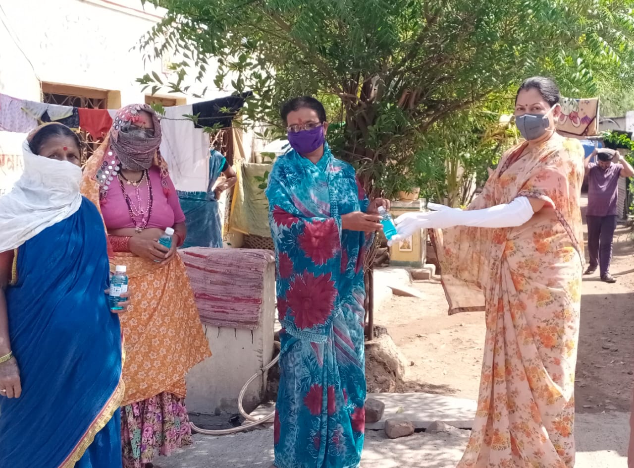 तालुक्यातील आलियाबाद येथे ग्रामपंचायतीच्या वतीने संपुर्ण गावात घरोघरी ग्रामस्थांना सॅनिटायझरचे मोफत वाटप सरपंच ज्योतिका चव्हाण यांच्या हस्ते करण्यात आले .